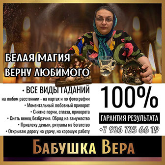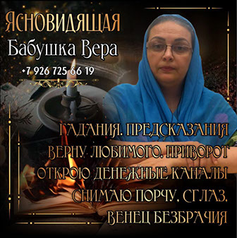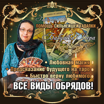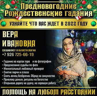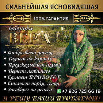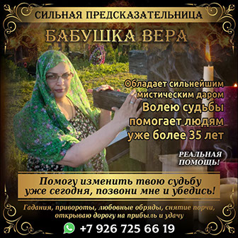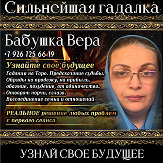Действительно хорошая гадалка- Вера Ивановна много раз к ней обращалась и буду обращаться. Всегда довольна результатами, потому что с ней уверена в итогах гадания. У меня сбывалось все, то что говорила Вера Ивановна. Так что советую гадалку бабушку Веру Ивановну, как хорошего и честного специалиста.